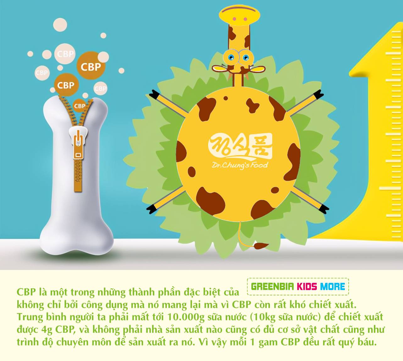 Gần đây, các nhà nghiên cứu đã tìm hiểu và chứng mình để giúp trẻ tăng hấp thu, tăng trưởng chiều cao tối ưu, ngoài chế độ ăn uống thích hợp với đầy đủ chất thì việc bổ sung thêm các sản phẩm men vi sinh có chứa các thành phần như sữa non chuẩn hóa (CBP) là rất có ích. Theo chuyên gia dinh dưỡng Nguyễn Thị Lâm, CBP là chất được chiết xuất từ sữa non của bò sữa đã qua quá trình tiệt trùng, chuyển hóa để có được thành phần tối ưu nhất. CBP giúp tăng hormone tăng trưởng, tăng trọng lượng, tăng sự phát triển của xương, mật độ xương và tăng tế bào xương giúp cho việc hình thành xương tốt nhất. Từ đó, sau khi hoàn thành nghiên cứu, các nhà khoa học cho rằng CBP chính là chất giúp bé tăng trưởng chiều cao và sức đề kháng tốt nhất. Chính nhờ phát hiện này, các nhà khoa học đã đưa CBP vào danh sách chất giúp trẻ tăng trưởng chiều cao tối ưu.