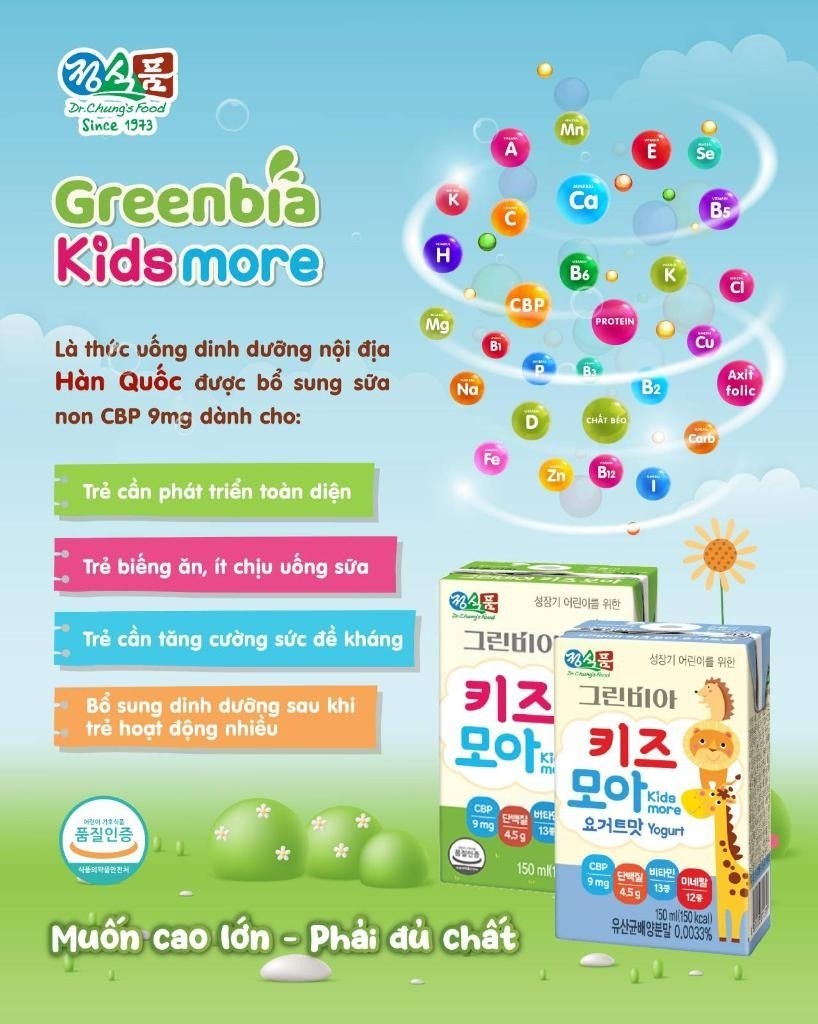 GREENBIA KIDS MORE - HỖ TRỢ TĂNG CHIỀU CAO CÂN NẶNG VƯỢT TRỘI BỔ SUNG SỮA NON TỪ CÔNG TY SỮA NỔI TIẾNG TOP ĐẦU HÀN QUỐC